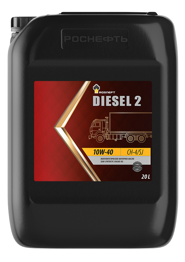 Rosneft Diesel 2 10W-40 – всесезонное полусинтетическое моторное масло, разработанное для применения в дизельных двигателях коммерческой техники, требующих применения масел, соответствующих требованиям спецификации API CH‑4. Масло изготавливается с использованием высококачественных базовых масел и современного пакета присадок. Одобрено ведущими российскими производителями коммерческой техники.